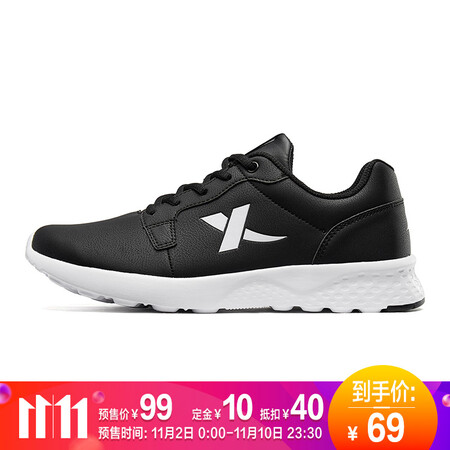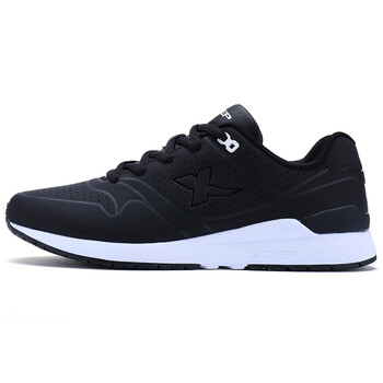 特步情侣鞋休闲鞋革面舒适运动鞋绑带慢跑鞋983219329025 黑白-革面-男 42码