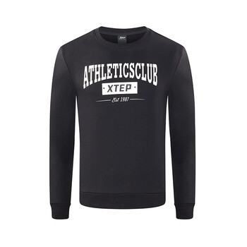 特步男子休闲圆领套头简约时尚运动卫衣882329059279 黑 L