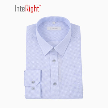 INTERIGHT休闲棉印花男士休闲长袖衬衫 浅蓝印花L码
