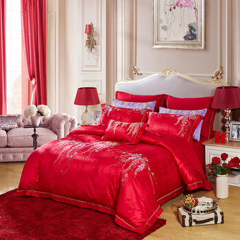 LUOLAI罗莱家纺 228纱支提花全棉八件套 婚庆纯棉床品套件床上用品床单被套 TY6187花曼·缠绵220*250红