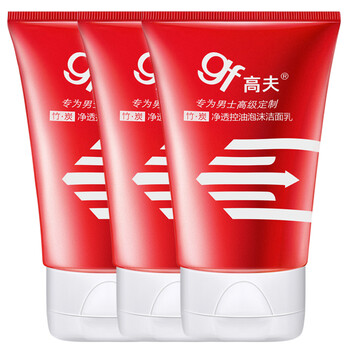 高夫(gf)竹炭净透控油泡沫洁面乳100g*3支装(深层控油抗痘男士洗面奶男士套装)