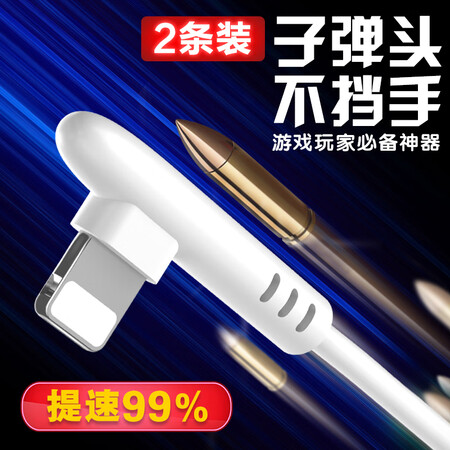 【两条装】朗客 苹果数据线充电线弯头快充2米+2米适用苹果Xs Max/XR/X/8/5/6S/7/8Plus iPad Air/Pro 白色