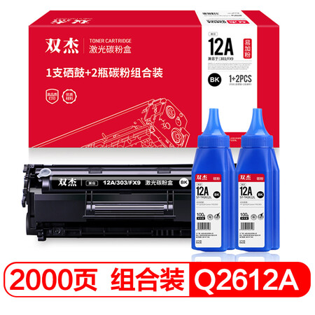 双杰12A易加粉硒鼓组合装1支鼓+2支粉 Q2612A 适用惠普1010 1012 佳能MF4322dG MF4330d MF4330dG打印机墨粉