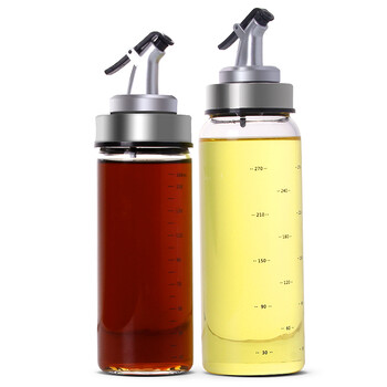 拜杰(Baijie)玻璃油壶带刻度防漏耐高温油瓶按压式油嘴家用酱醋调料瓶 油罐 300ml+170ml油壶2件套装CP-153