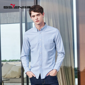 柒牌 SEVEN 衬衫男 2019春季长袖衬衫男士长袖修身纯色休闲长袖衬衣寸商务 116A38100 天蓝 165