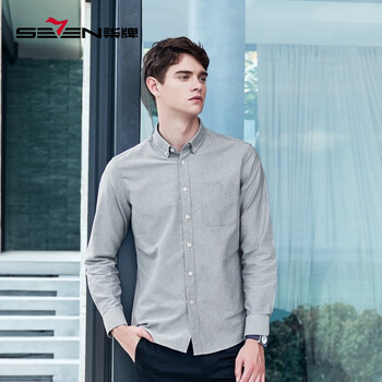 柒牌 SEVEN 衬衫男 2019春季长袖衬衫男士长袖修身纯色休闲长袖衬衣寸商务 116A38100 浅灰 165