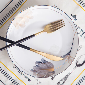 传旗 韩式陶瓷盘套装(8英寸)陶瓷餐具饭盘菜盘深汤盘(2只装)冰山雪莲