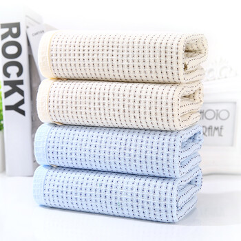 依明洁毛巾家纺 提缎洗脸面巾 纯棉毛巾 4条装 棕/蓝各2条 90g/条 33*72cm