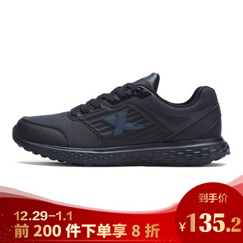 特步男鞋跑鞋2018秋冬皮革跑步鞋休闲运动鞋减震防滑鞋子 983419119057 黑 43码