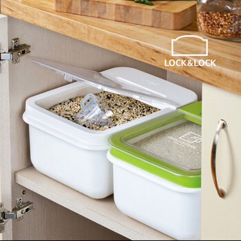 乐扣乐扣(lock&lock) 塑料保鲜盒 米桶 密封罐储物罐 谷物杂粮盒大容量10kg防虫防潮米箱 HPL540WHT (白色)