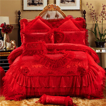 北极绒 Bejirog 婚庆四件套 全棉大红结婚床上用品套件 蕾丝边时尚套件 一心一意 1.5米床/1.8米床适用