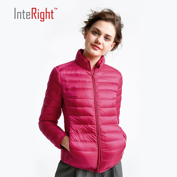 INTERIGHT 90白鸭绒女士立领超轻便携羽绒服 玫红 XL码