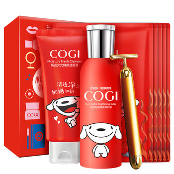 高姿(COGI)少女肌秘礼盒(洁面膏100g+大白水150ml+面膜5片+赠塑颜仪)京东JOY定制护肤套装补水保湿化妆品