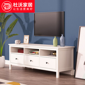 杜沃 电视柜 汉尼斯电视机柜 北欧简约实木电视柜客厅三抽屉组合柜 1.5米 浪漫白