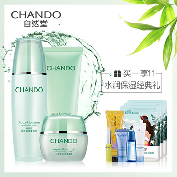 自然堂(CHANDO)水润滋润保湿经典套装(洗面奶+爽肤水+霜+唇膏+护手霜+面膜*3+三件套)(护肤品套装)
