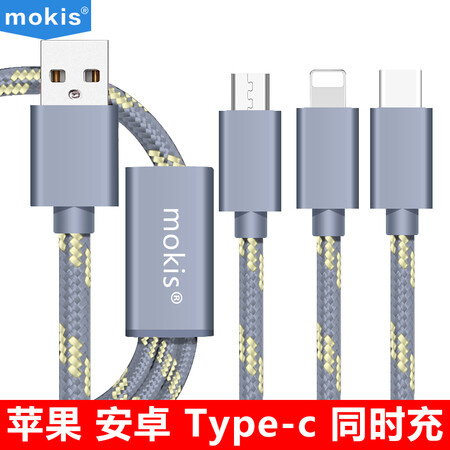 摩奇思(mokis)数据线一拖三 苹果/安卓/Type-C数据线 三合一多合一手机充电线/充电器线 1.5米 灰金