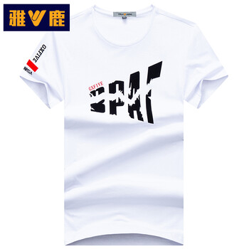 雅鹿男装 YALU UOMO休闲T恤2019夏季新款圆领男士短袖T恤男韩版字母酷炫潮T上衣AS01FXTB08810 白色 195/108A