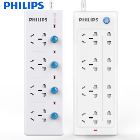 飞利浦(PHILIPS)电插板儿童安全插座保护门 8位总控1.8米插排+4位分控1.8米排插 新国标套装接线板