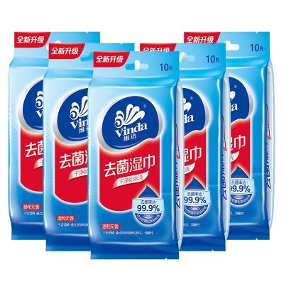 维达(Vinda) 湿巾 去菌湿巾 10片独立装*5包 (温和无香)(量贩装)