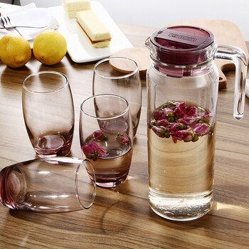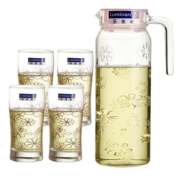 乐美雅(Luminarc)无铅玻璃凝彩杯壶套装 果汁冷水壶 鹿特丹壶凝彩水具 5件套(冰粉)