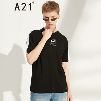 以纯线上品牌A21 2019夏季新品男装 短袖T恤 针织宽松圆领落肩短袖T恤衫 R492131016 黑色 170/84A/M