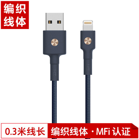 ZMI 紫米MFi认证苹果数据线30cm编织线手机充电线支持iphone6s/7/7P/8/8P/X/XS/XR/X MAX/SE/ipad AL823蓝色