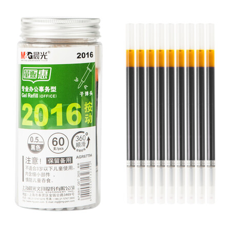 晨光(M&G)0.5mm黑色按动子弹头中性笔替芯签字笔水笔芯套装 60支装AGR67T94