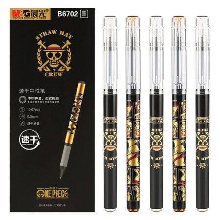 晨光(M&G)航海王系列0.5mm黑金速干中性笔子弹头签字笔水笔 10支/盒QGPB6702