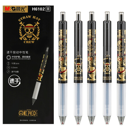 晨光(M&G)航海王系列0.5mm黑金速干按动中性笔子弹头签字笔水笔 10支/盒QGPH6102