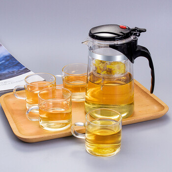 贝瑟斯 玻璃泡茶壶套装 一壶4杯飘逸杯茶杯过滤茶具家用玻璃杯套装700ml 五件套
