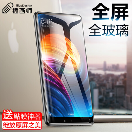 插画师 小米mix2s/mix2钢化膜 mix2s/mix2手机膜 高清透明全覆盖全屏防摔防指纹手机保护前膜 黑色