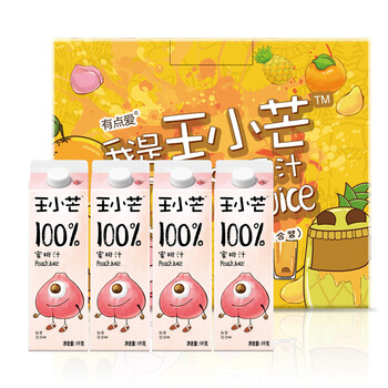 王小芒 100%果汁 蜜桃汁1L*4瓶新年礼盒装 无添加剂果汁饮料