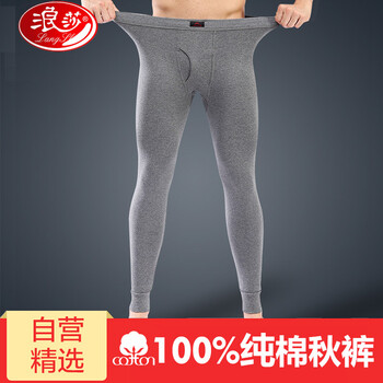 浪莎秋裤男单件纯棉薄款青年男士棉毛裤保暖线裤衬裤深灰 175/XL