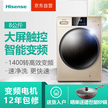 海信(Hisense) 8公斤BLDC变频滚筒洗衣机 8.7吋全触控屏 WIFI智控 BLDC变频(金色)HG80DEA142YFG