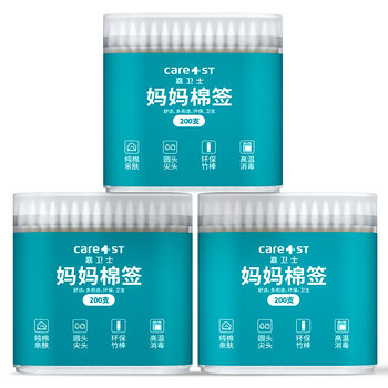 嘉卫士(Care1st) 婴儿妈妈棉签600支一次性孕产妇棉棒双圆尖头掏耳朵卸化妆卫生棉花签棒3盒