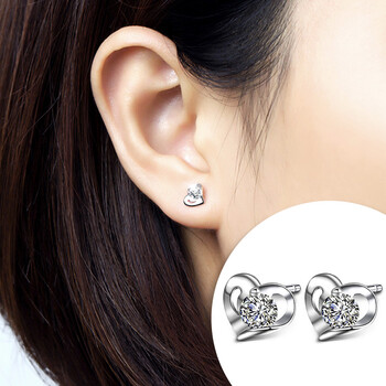 茵曼 S925银心形耳钉女款日韩国简约首饰品礼物送礼送女友饰品 且爱 白色 送女友情人节生日礼物