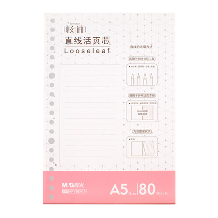 晨光(M&G)极简系列单本装A5/80页直线活页芯本册替芯 20孔APY9BH15