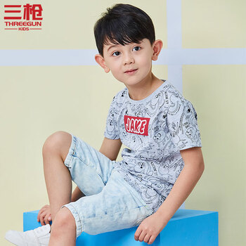 三枪童装儿童短袖T恤 卡通IP系列 男童女童中大童圆领打底短袖衫 2C037A1 探险活宝-麻灰 160