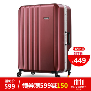 美旅AmericanTourister拉杆箱 经典升级款铝框箱男女商务耐磨行李箱万向轮旅行箱 25英寸TSA海关锁TH6酒红色