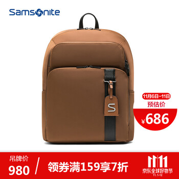 新秀丽(Samsonite)Hazel 时尚背包商务电脑包简约配皮男士双肩包TM0*23002 黄棕色