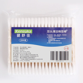 健舒佳(kensuka)双头棉签 耳鼻清洁化妆棉签棒木棒袋装 200支/包