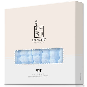 子初新生儿浴巾儿童泡泡棉纱布浴巾(蓝) 6层/120*120cm