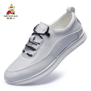 稻草人 MEXICAN 休闲皮板鞋男子运动透气软面平底轻质增高韩版潮流防滑耐磨 AS18075 白色 43