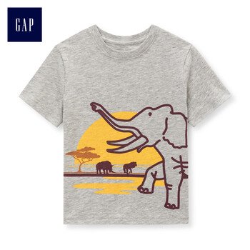 GAP旗舰店 童装男童妙趣图案圆领短袖基本款T恤 293289 浅麻灰 18-24M