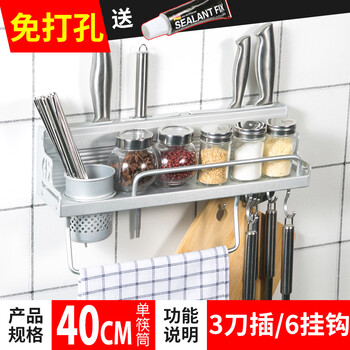 双枪(Suncha)免打孔置物架 40cm加厚厨房挂件太空铝壁挂刀架调料架杂物收纳厨卫非浴室五金套装 送强力胶水
