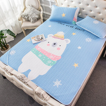 九洲鹿 凉席家纺 仿天丝空调冰丝席三件套 双人卡通席子 凉席折叠软席 呆呆熊 1.8米床