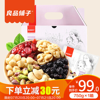 良品铺子 每日坚果 混合干果礼盒 零食大礼包30包 全能妈妈综合果仁750g
