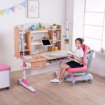 心家宜 实木儿童学习桌椅套装 实木学习桌可升降儿童书桌学生书桌写字桌课桌F173书桌配F219椅子 配F219粉色粉色