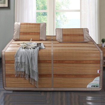 九洲鹿 凉席家纺 双人加大碳化双面木纹竹席 镜面清凉水磨席子竹凉席两用折叠式 富贵席 (不含枕席) 1.8米床