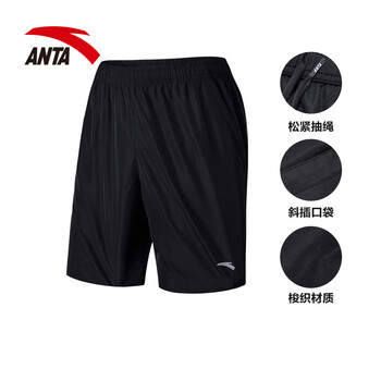 安踏 ANTA 95727301 男子梭织透气舒适运动休闲五分裤 A92203基础黑 L(男175)